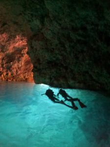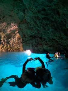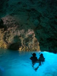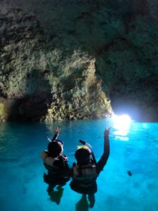 朝一番のピッカピカの洞窟での一枚![]()