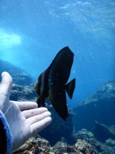 手乗りツバメウオがお出迎え。よしよしヾ(・ω・`)