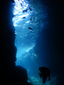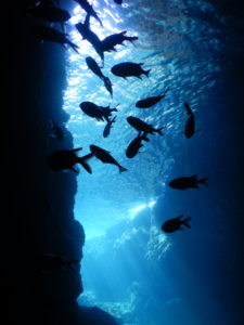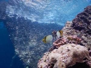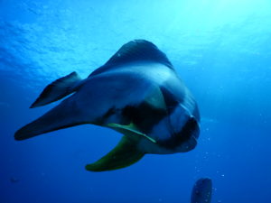 大人のツバメウオ達と気持ち良く泳ぎます。