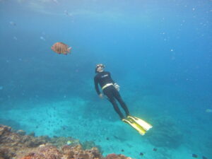 ほんの少しなアドバイスで水深6mで横に綺麗に泳がれていました!