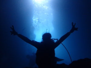洞窟で写真撮って、餌付けして、最後にバブルリング作って。。