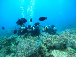 前回はビーチで裏真栄田だったとのことで、ボートダイビングに大興奮!