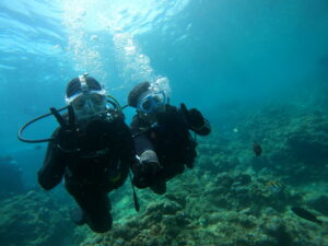 体験ダイビングやシュノーケリングチームは「真栄田岬」へ