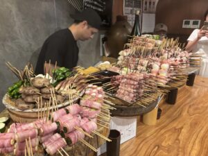 ここはカウンターに調理前の串が置いてあり、渡されたお皿に自分で選んでいくスタイル!