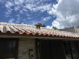 赤瓦の上に乗っているシーサーはオスとメスが寄り添っていてとても可愛い