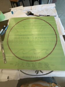 お店リニューアル中でキッシーと新しく手作り看板を作ってまーす!