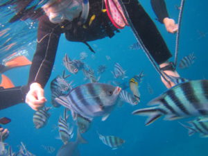 泳いでいる最中に雨が一度止んで、洞窟外での餌付けがとてもやりやすかったです
