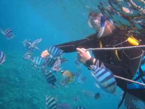 泳いでいる最中に雨が一度止んで、洞窟外での餌付けがとてもやりやすかったです