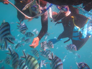いつも以上に餌付けで魚が集まってきました🐟🐟🐟