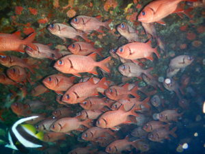 そして、洞窟の中にいるアカマツカサは赤色が映えますね🐟