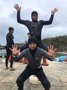 ウエットスーツはフードをかぶったり