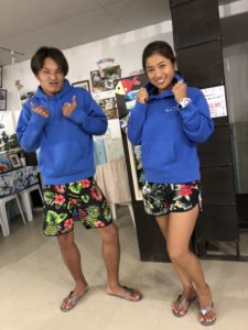 サーフパンツも漁サンもパーカーの色まで一緒になっちゃった!![]()