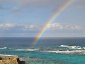 虹の始まりなのか終わりなのか、