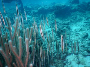 ちなみに下を向いて泳ぐのは海底のプランクトンを