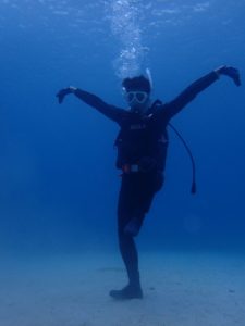 砂地でフィンを外してアチョー!!のポーズ🤭